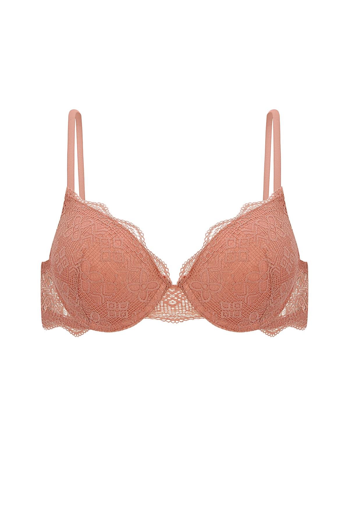 Wonna Anna 2735 Dantelli Dekolte Dolgulu Push-Up Sütyen Ve Külot Takımı- Gül Kurusu