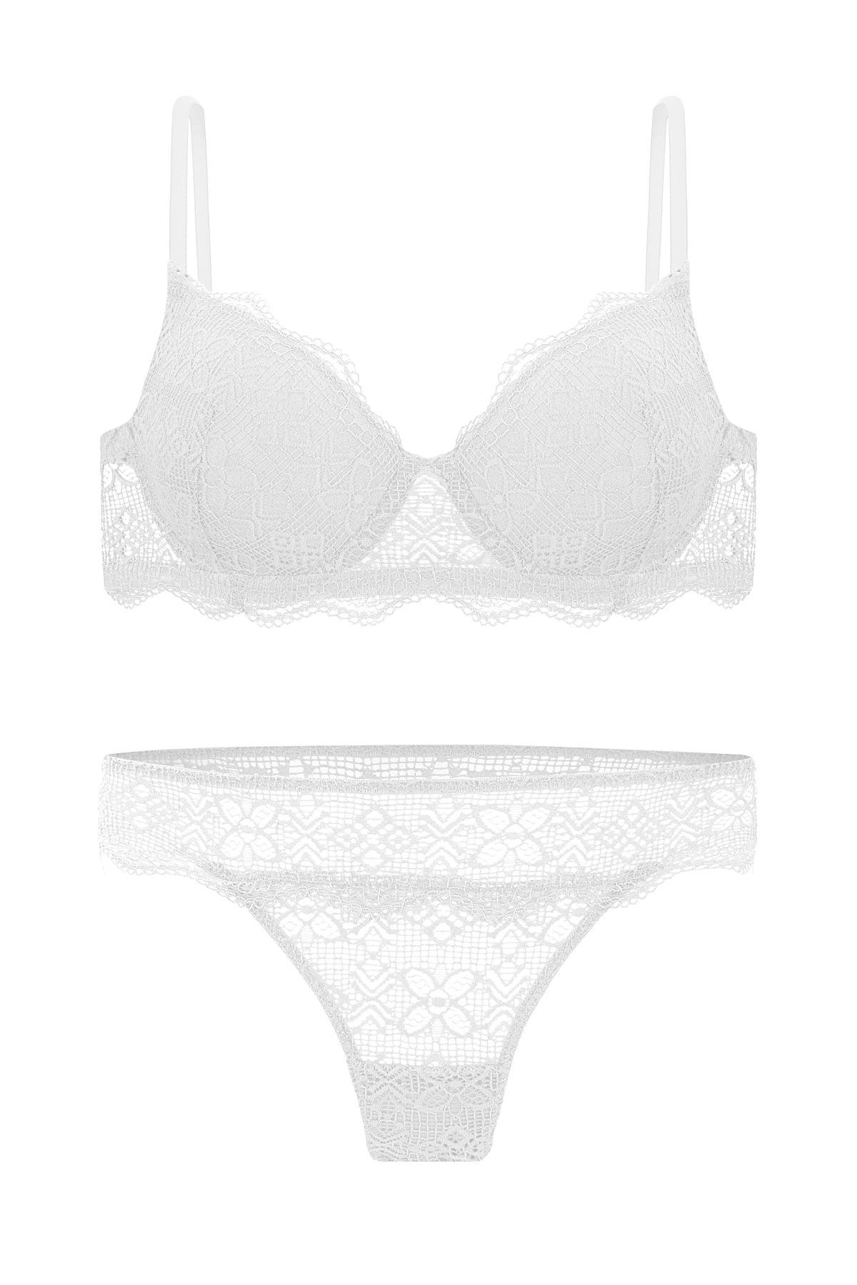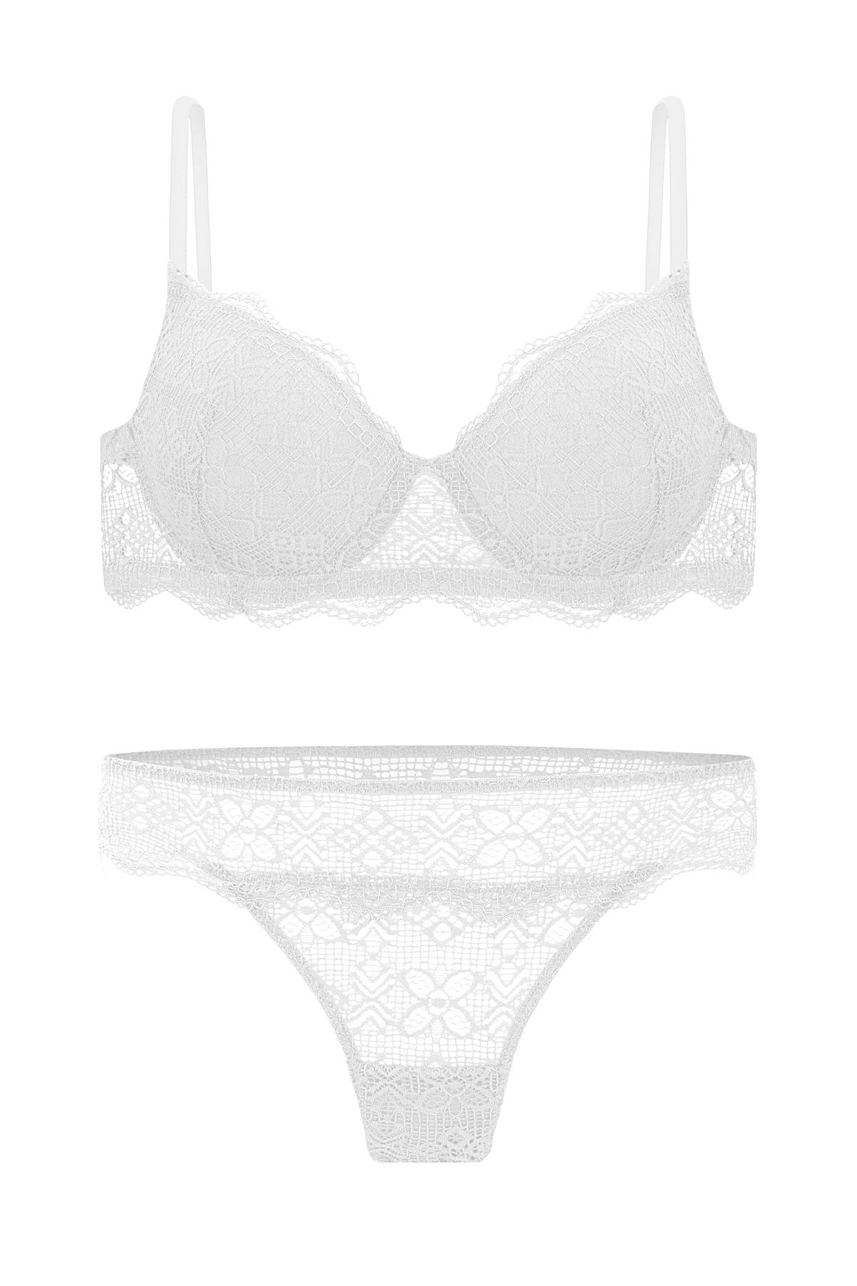 Wonna Anna 2736 Dantelli Dekolte Sütyen Ve Külot Takımı- Dolgusuz Ekru
